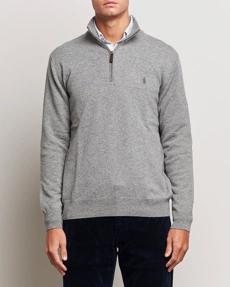 Ralph Lauren Men’s Cotton Quarter-Zip Sweater – Light Grey