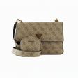 Guess Alexie Crossbody Flap bag in a brown monogram pattern with gold-tone hardware. - BEIGE is backordered and will ship as soon as it is back in stock.