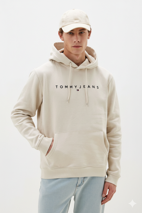 Tommy Jeans Men’s Beige Hoodie with White Logo