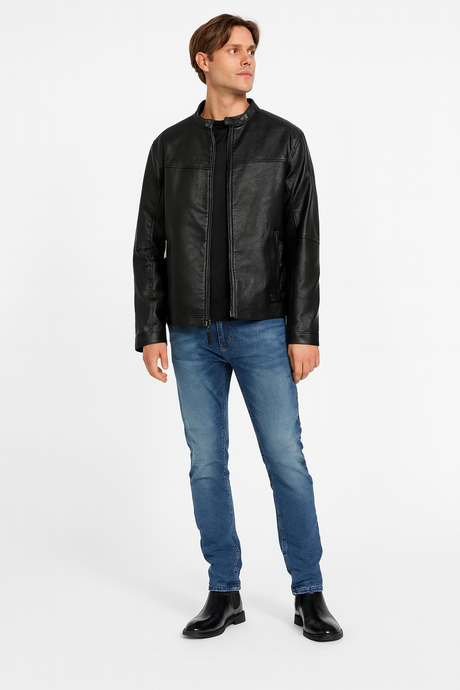 Karl Lagerfeld Men’s Black Leather Moto Jacket