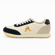 - Elevate your everyday look with the Le Coq Sportif Men’s Heritage Navy & Gold Runner Sneaker. This classic low-top silhouette blends smooth white nylon panels with rich navy suede overlays for a timeless yet modern aesthetic. Accented by a bold gold rooster logo and matching gold heel embroidery, it sits atop a cushioned EVA midsole and durable gum outsole for all-day comfort and traction. With crisp white woven laces, a padded collar, and supportive insole, this sneaker delivers effortless style and performance-ready support—perfect for city streets or weekend adventures