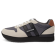 • Add a vintage athletic touch to your casual wardrobe with these Tommy Hilfiger retro-inspired sneakers. Designed with a blend of breathable grey mesh and soft beige suede overlays, they feature bold black side stripes stamped with the iconic "HILFIGER" logo. The cushioned midsole and sturdy black outsole provide comfort and durability, while the brown heel detail adds a stylish finish. Perfect for everyday wear, these sneakers combine sporty functionality with timeless Tommy Hilfiger design