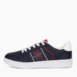 - Step into timeless fashion with these Tommy Hilfiger navy sneakers, designed with bold red and white accents for a striking heritage-inspired look. Featuring the signature “HILFIGER” branding within a contrasting side panel, these sneakers combine premium craftsmanship with modern casual appeal. The cushioned insole and soft lining provide all-day comfort, while the durable white rubber sole ensures reliable traction and style. Perfect for casual wear, street style, or weekend outings, these sneakers showcase the iconic Tommy identity with every step