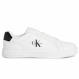 Calvin Klein Jeans Classic Cupsole low-top leather sneakers with a black heel tab and logo details. _ White