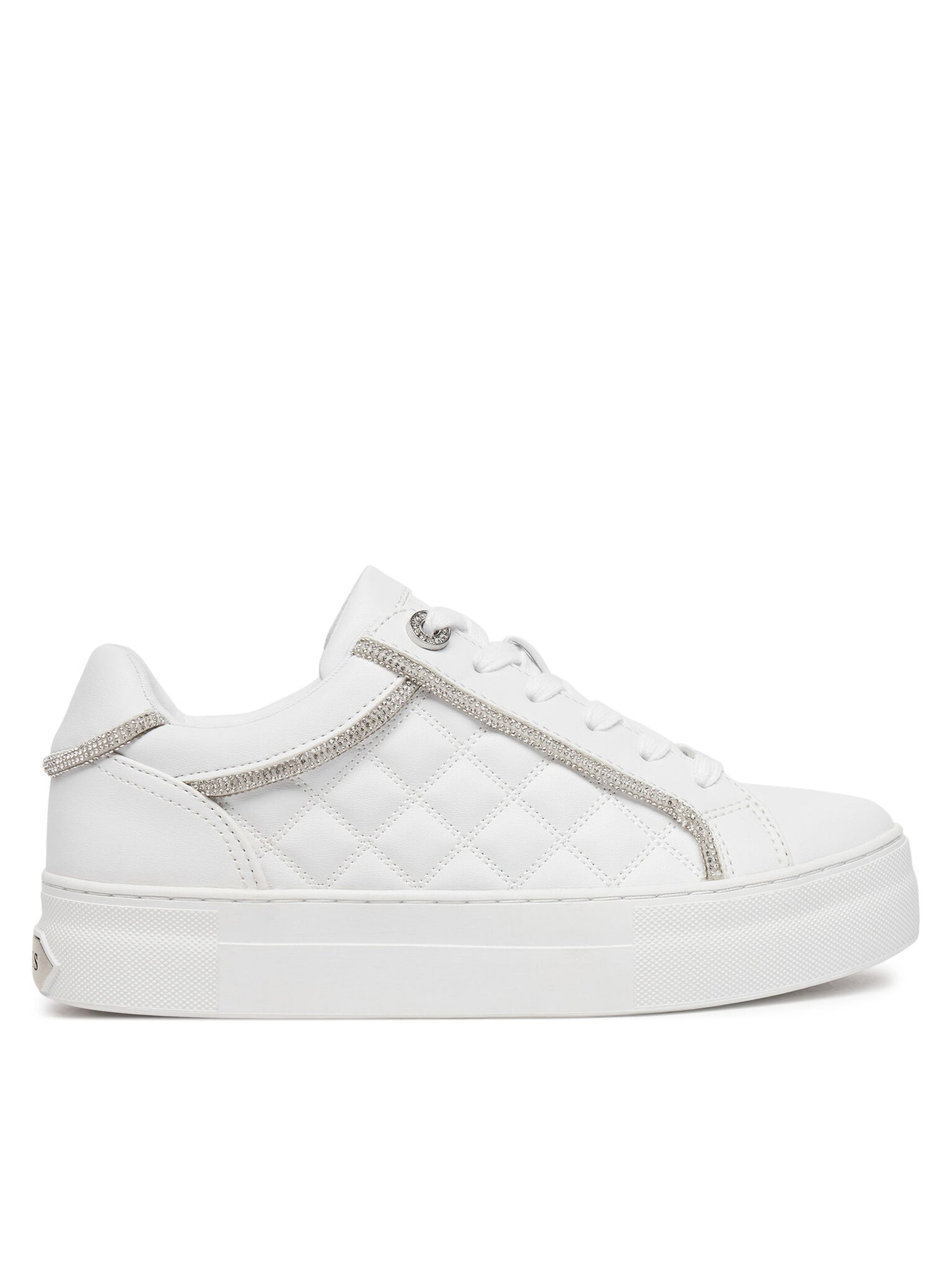 - Add a touch of sparkle to your casual look with these GUESS women’s sneakers, crafted in sleek white with quilted side panels for a chic finish. Accented with rhinestone-trim details and metallic logo hardware, these sneakers bring understated glamour to everyday style. The low-top design and cushioned sole ensure comfort, making them the perfect choice for pairing with jeans, skirts, or dresses when you want both elegance and ease
