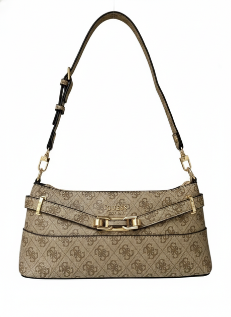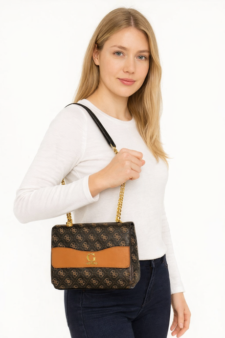 Guess Monogram Crossbody Bag with Tan Flap Accent